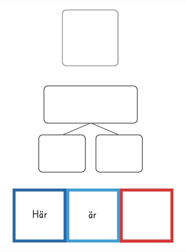Sats- och syntesplattor – Läs med Hugo och vännerna! består av satsscheman och läggplattor avsedda att användas tillsammans med materialets begrepps-, bokstavs- och ordkort.