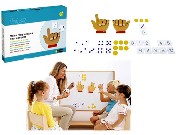 Händerna har böjbara fingrar för att kunna illustrera talen 0-10 och tillsammans med markerna skapa en förståelse för antal och addition/subtraktion.