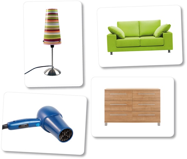 50 fotograferade bilder på små och stora saker i hemmet. Bakgrunden är vit för att sätta fokus på föremålet. Korten levereras i en rejäl och lätthanterlig förvaringsask.